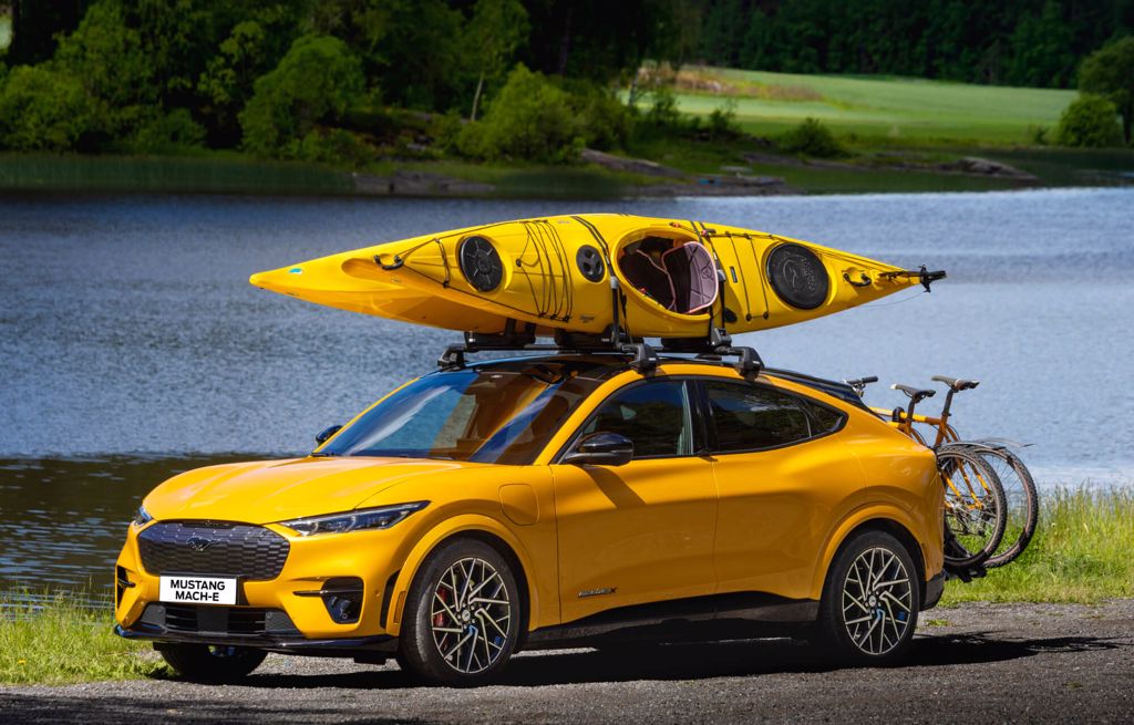 Ford Mustang Mach-E jest przystosowany do przewozu kajaków i boksów dachowych