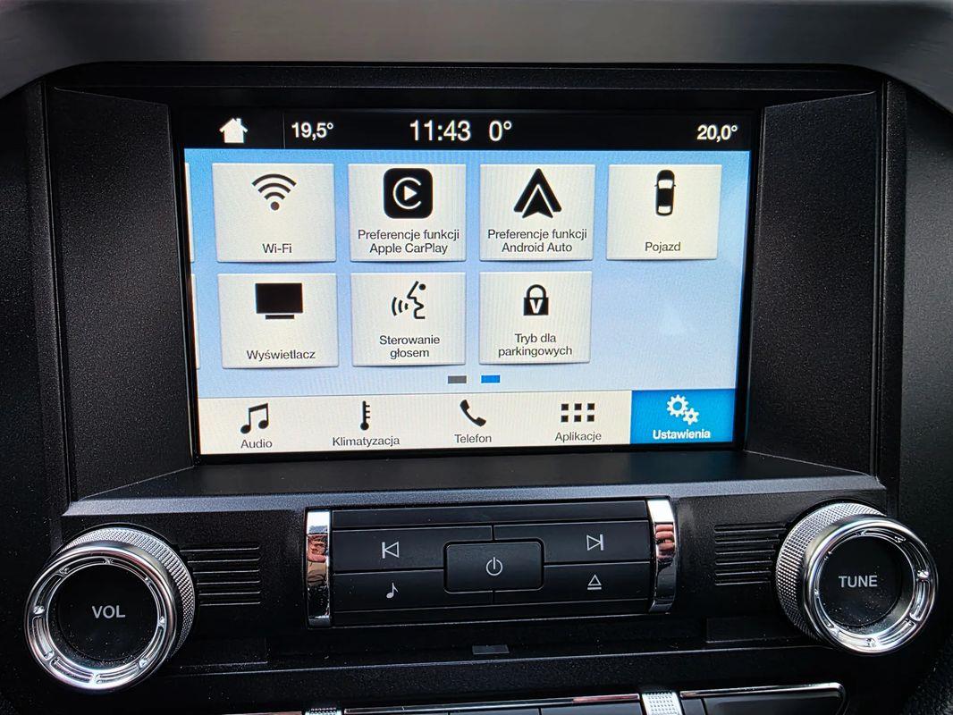 Radioodtwarzacz CD/MP3 z DAB+ i Ford SYNC 3 – kolorowy wyświetlacz dotykowy 8", zestaw głośnomówiący z Bluetooth® i rozbudowaną funkcją sterowania głosem w języku polskim oraz funkcją wzywania pomocy, 9 głośników, gniazda: 2xUSB, zdalne sterowanie na kierownicy