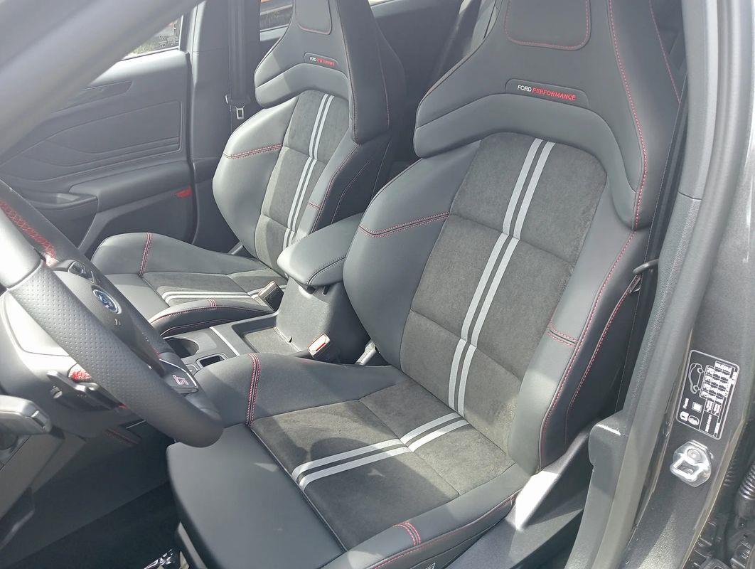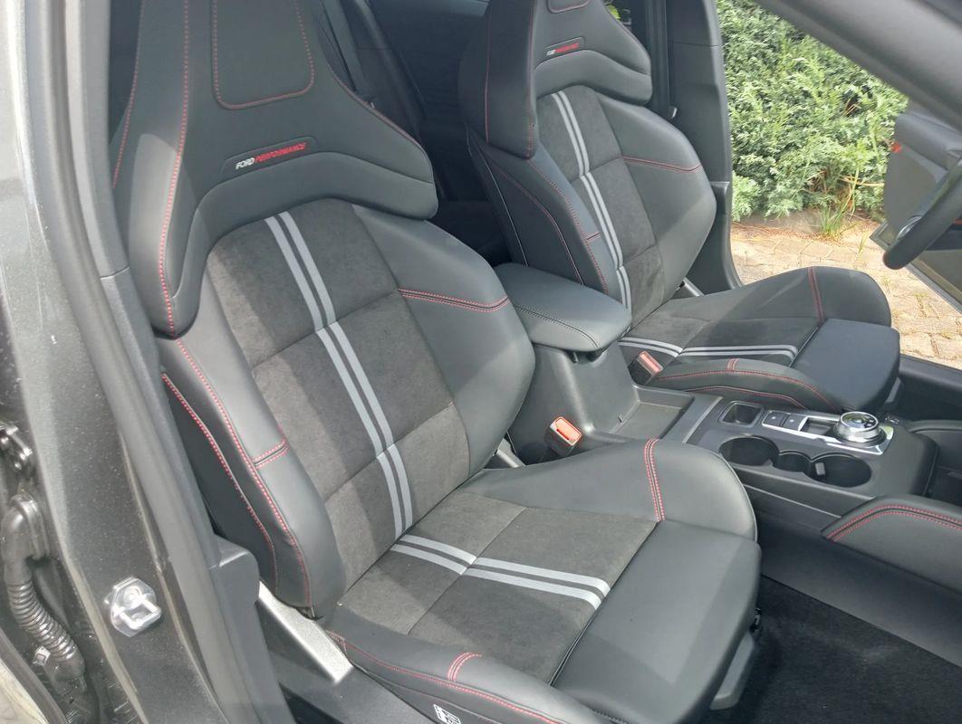 * Fotele – z tapicerką częściowo skórzana ciemna Twin Track/ skóra ekologiczna Sensico z czerwonymi przeszyciami