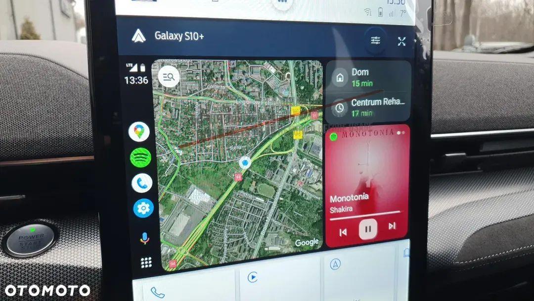 • 18" obręcze kół ze stopów lekkich, wzór 5x2-ramienny • Auto High Beam z Glare Free - system automatycznego sterowania światłami drogowymi z funkcją zapobiegającą oślepianiu. • Reflektory projekcyjne LED z funkcją statycznego doświetlania zakrętów • Kamera z tyłu ułatwiająca parkowanie • Czujniki parkowania z tyłu i z przodu • Dodatkowo przyciemniane szyby w tylnej części nadwozia • Lusterka boczne sterowane, podgrzewane i składane elektrycznie, z wbudowanymi kierunkowskazami i lampkami oświetlającymi podłoże • Wycieraczki przedniej szyby sterowane automatycznie, z czujnikiem deszczu • Podgrzewana przednia szyba (Quickclear) • Radioodtwarzacz z SYNC 4A, DAB+ i nawigacją satelitarną z 15.5" kolorowym, dotykowym wyświetlaczem • Klimatyzacja dwustrefowa z automatyczną regulacją temperatury • System filtracji powietrza w kabinie • Adaptive Cruise Control z funkcją Stop & Go i Lane Centring • FordPass Connect z modemem GSM – dzięki któremu stworzysz w samochodzie Hot Spot i możesz zdalnie przygotować samochód do trasy oraz zaplanować podróż z uwzględnieniem punktów ładowania• Oświetlenie wnętrza diodami LED z elementami nastrojowego oświetlenia oraz możliwością wybrania koloru podświetlenia • Fotele z tapicerką skórzaną Sensico z białymi przeszyciamii • Przednie fotele z manualną regulacją • Podgrzewane przednie fotele • Bezprzewodowa ładowarka do smartfonów • Kierownica podgrzewana, wykończona skórą ekologiczną Sensico