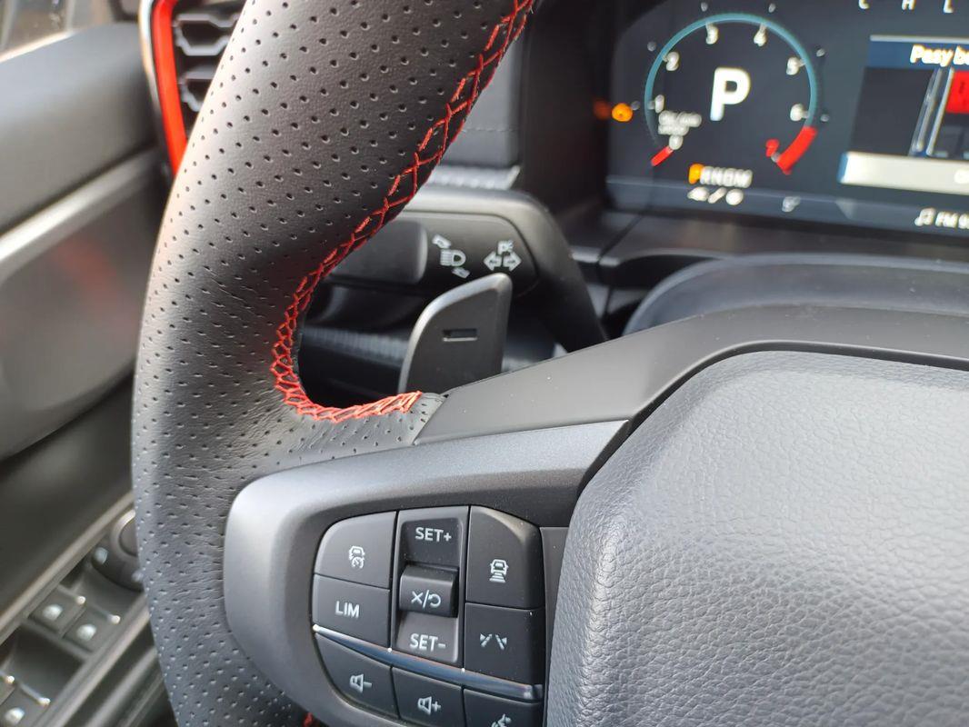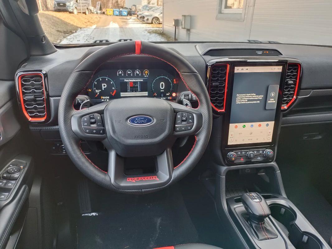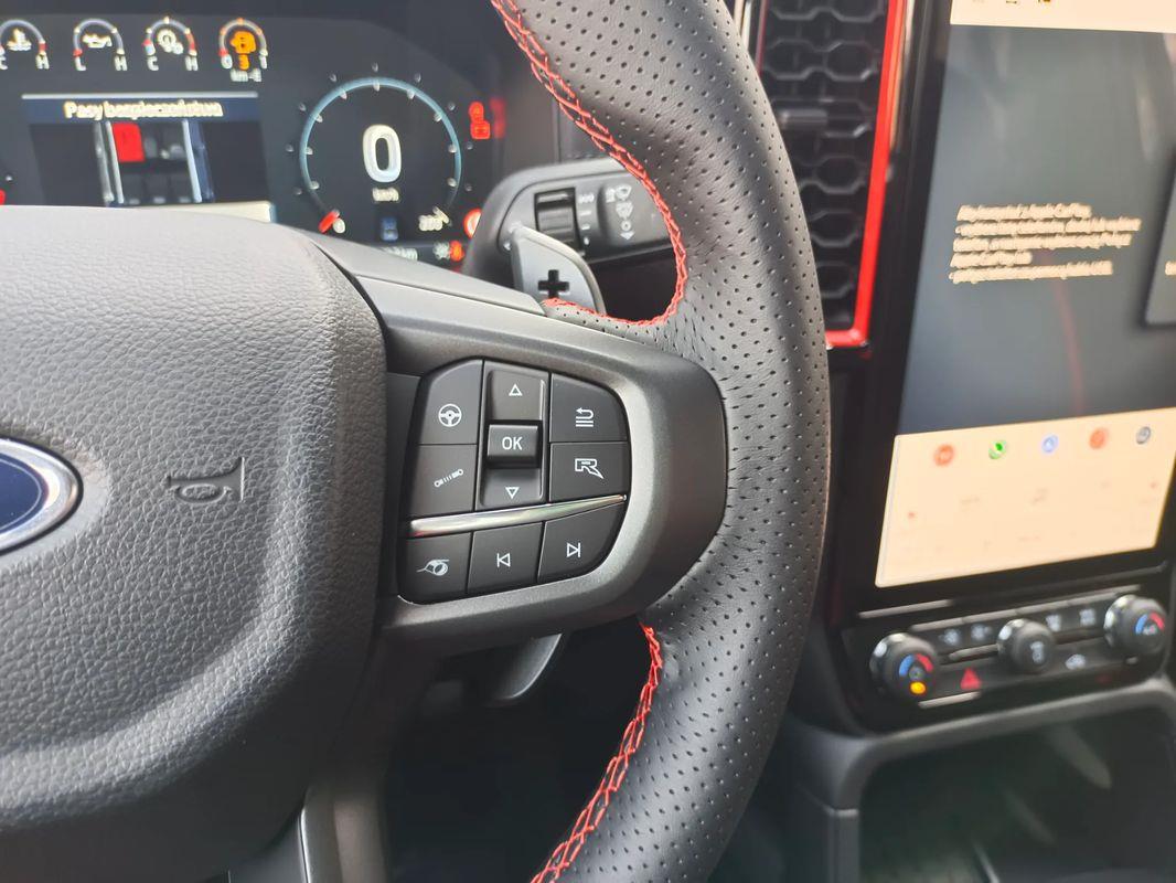 lędźwiowego) z tapicerką skórzaną z logo Raptor, oraz funkcją przypominającą o zapięciu pasów bezpieczeństwa z przodu i z tyłu pojazdu.