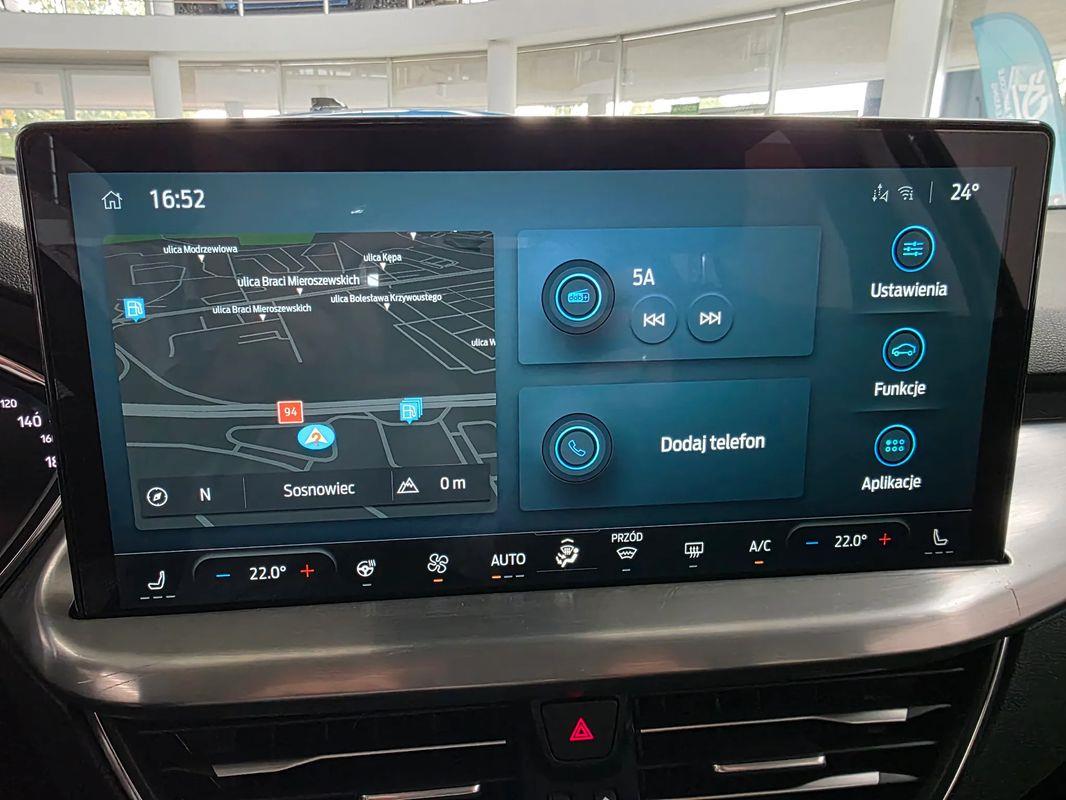 * System audio z SYNC4 , DAB+ i nawigacją satelitarną – kolorowy wyświetlacz dotykowy 13.2", bezprzewodowa obsługa Apple CarPlay i Android Auto zestaw głośnomówiący z Bluetooth®, obsługa głosowa w języku polskim, 6 głośników, zdalne sterowanie na kierownicy (ICFCJ)