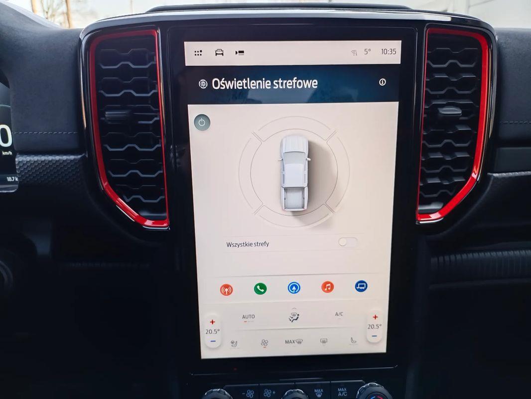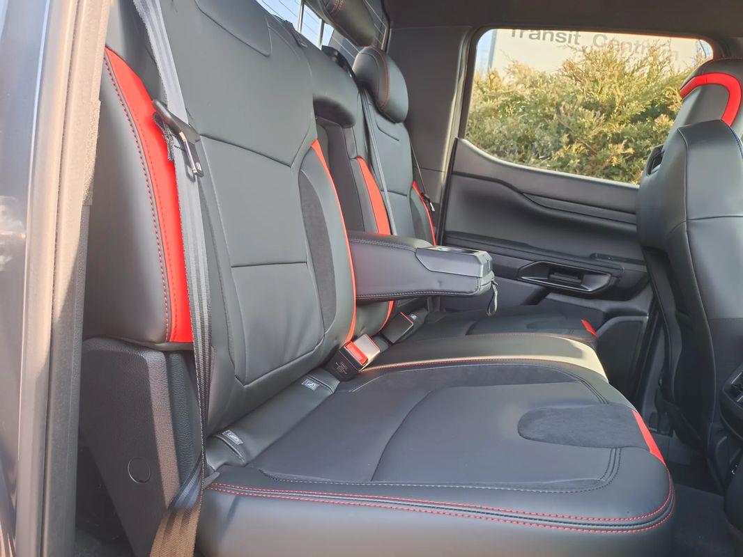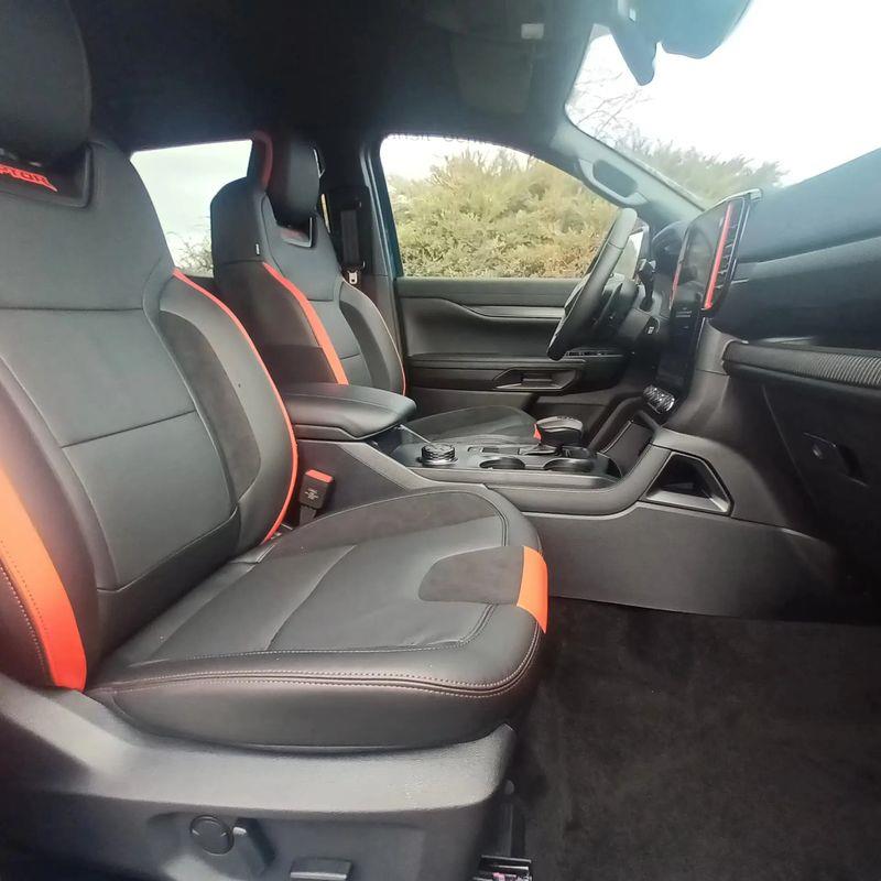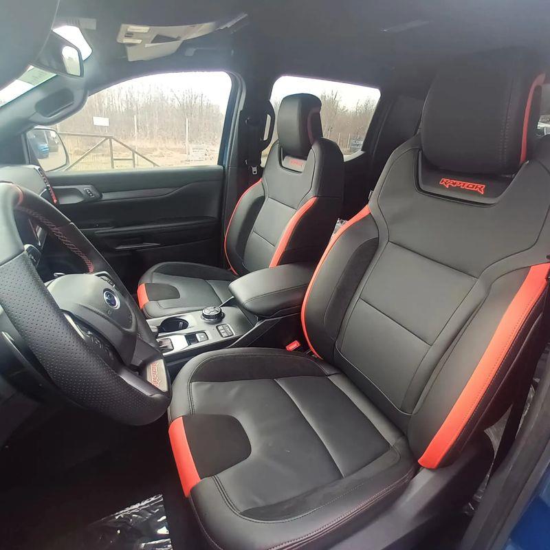 lędźwiowego) z tapicerką skórzaną z logo Raptor, oraz funkcją przypominającą o zapięciu pasów bezpieczeństwa z przodu i z tyłu pojazdu.